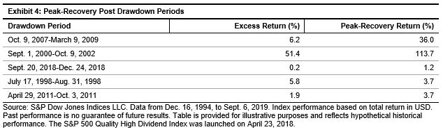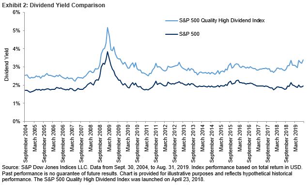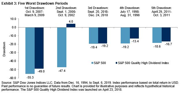 For market participants who fear an economic slowdown and a stock market pullback, the S&P 500 Quality High Dividend Index, a dividend strategy that incorporates a quality factor,[i] may aid in providing defensive characteristics.