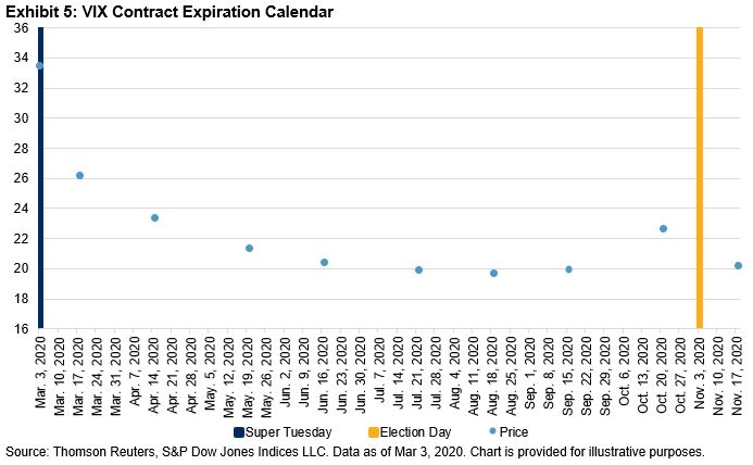 Futures markets seem to point to higher potential volatility in 2020 as we near the November 2020 general election. VIX® futures price a premium leading into the November 2020 election and current delegate counts show a stark contrast in political policy to challenge the incumbent. With stocks coming off record highs and markets pricing for increased volatility around Election Day, there still appears to be a place for bonds in your portfolio.