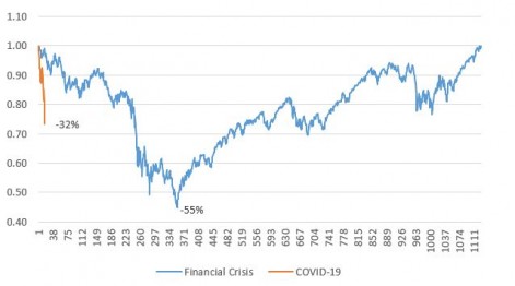 Exhibit 1.  Current Decline vs. Financial Crisis