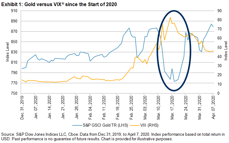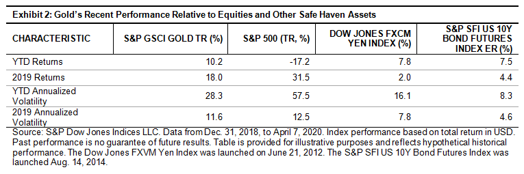 Much has been made of the relative performance of gold since the start of the global COVID-19 pandemic. The S&P GSCI Gold gained 10.2% YTD through April 7, 2020, highlighting its safe-haven status; however, it is worth reviewing this performance and considering what demand drivers may influence gold prices over the coming months.