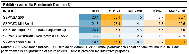 In early March 2020, S&P Dow Jones Indices released the SPIVA Australia Year-End 2019 Scorecard. With the market gyrations in late February and March due to the COVID-19 pandemic spreading across the globe, we decided to provide a “mid-term” SPIVA update to include data up to March 31, 2020, and to share the timely results through the webinar, Harnessing Active Vs. Passive Findings During Times of Market Turbulence. So, what did we find?