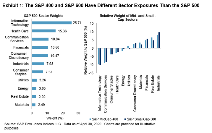 Many investors look to the S&P 500 to gauge U.S. market performance, with more than USD 9 trillion being indexed or benchmarked to the index as of the end of 2018. However, by looking beyond the S&P 500, the S&P 1500 offers perspectives on a broader range of market narratives. Indeed, S&P MidCap 400 and S&P SmallCap 600 constituents are typically more sensitive to the U.S. economy, and differences in sector allocations can help to diversify large-cap sector exposures.