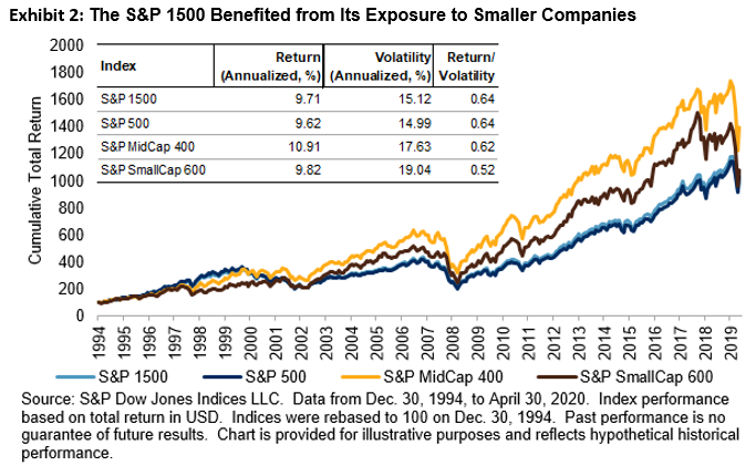 Combined with the fact that most active managers have typically found it difficult to outperform these indices – on an absolute or risk-adjusted basis – the S&P 1500 may be an appealing option for those looking to access the U.S. equity market.
