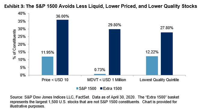 The S&P 1500 Avoids Less Liquid, Lower Priced, and Lower Quality Stocks That Are Specific to the Russell 3000