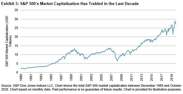 The S&P 500 is widely regarded as the best single gauge of large-cap U.S. equities, with more than USD 11.2 trillion indexed or benchmarked to the index as of December 2019. But while it is synonymous with U.S. equity market performance, the S&P 500 does not necessarily comprise the largest 500 U.S. companies.