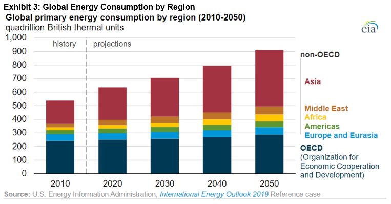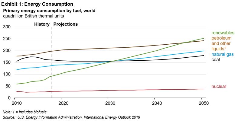 In addition, the clean energy push clearly needs to be a global phenomenon, as the growth in consumption through 2050 will primarily be from non-OECD countries.6 Therefore, having a global perspective when it comes to meeting the expected growth is useful.