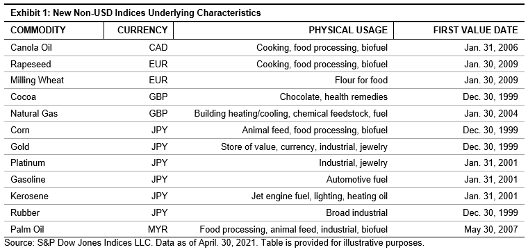 Expanding the Non-USD Denominated S&P GSCI Single Commodity Index Series