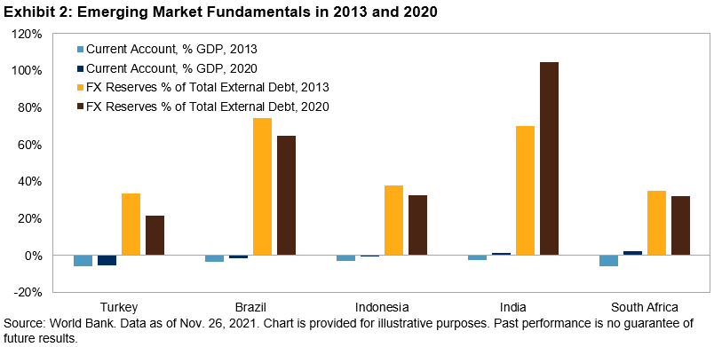 The S&P GSCI, the broad commodities benchmark, declined 10.8% over the month. The poor performance was driven almost exclusively by a major correction in energy prices, as the discovery of the Omicron COVID-19 variant cast a lengthening shadow over demand growth, added further complications to global supply chains, and dampened economic growth forecasts. The release of emergency oil stocks also played into the mix.