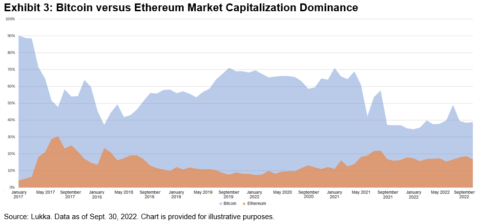 Unsurprisingly, perhaps, sector allocations have been unusually important in explaining this year’s relative returns. One way to see this is by examining the S&P 500 Equal Weight Index and the S&P 500. Exhibit 3 shows that the equal-weight index outperformed in the first 10 months of 2022, as it has done in most years since 1970, and that its 4.8% outperformance in 2022 is the highest margin through the end of October in over a decade.