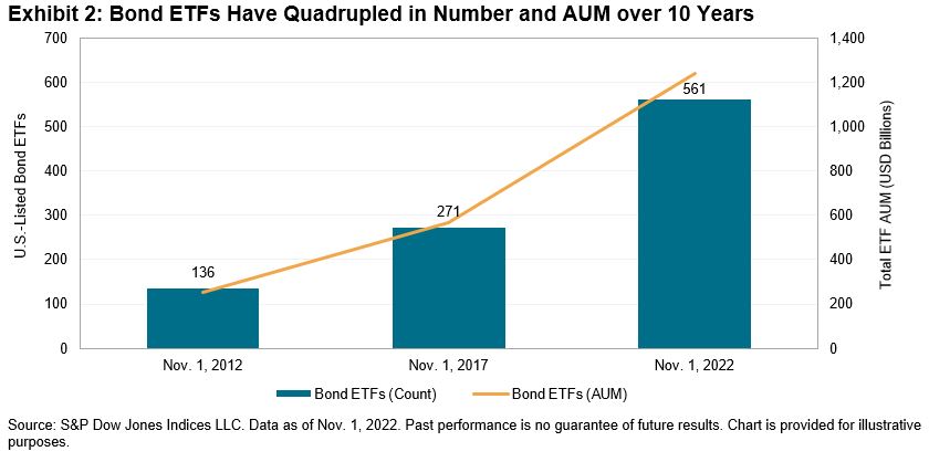 Beyond the cornerstone iBoxx USD Liquid IG and HY Indices underlying ETFs at the core of a fixed income strategy, the proliferation of fixed income ETFs over the past decade (see Exhibit 2) could allow for even more fine-tuning of liquid-beta sleeves that mirror broader portfolio characteristics while remaining tradable intraday, potentially reducing pressure on asset owners to use their carefully selected bonds as a source of capital in a crisis.