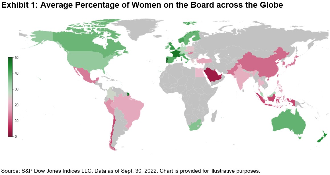 According to numerous studies,1 having a gender-diverse board is a key indicator of good corporate governance.2 The gender diversity of a board of an investee company is also one of the mandatory sustainability indicators3 that financial market participants are required to assess and report on under the EU’s Sustainable Finance Disclosure Regulation (SFDR).4 Using the S&P Global SFDR dataset,5 we examine this metric in the context of the S&P ESG Indices.
