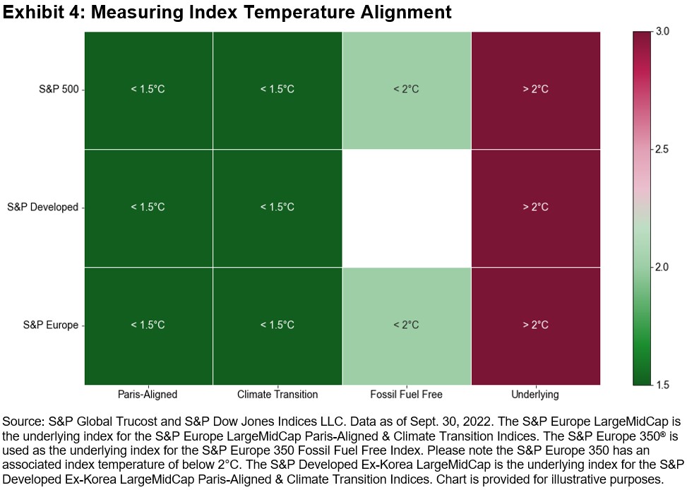 Index temperature alignment offers a starting point for market participants to align their strategies with the Paris Agreement goals. While currently S&P DJI’s market-cap benchmarks fall short of meeting this target; the S&P PACT Indices, which incorporate transition pathway considerations, provide forward-looking alignment. Just as entropy can be reversed with the right inputs, indices can be used to help reduce the negative effects of climate change and align with the Paris Agreement goals of a better, less warm and more orderly future state.