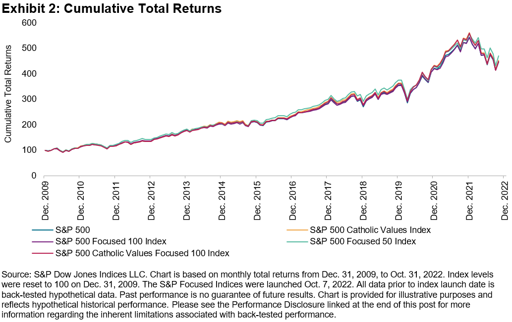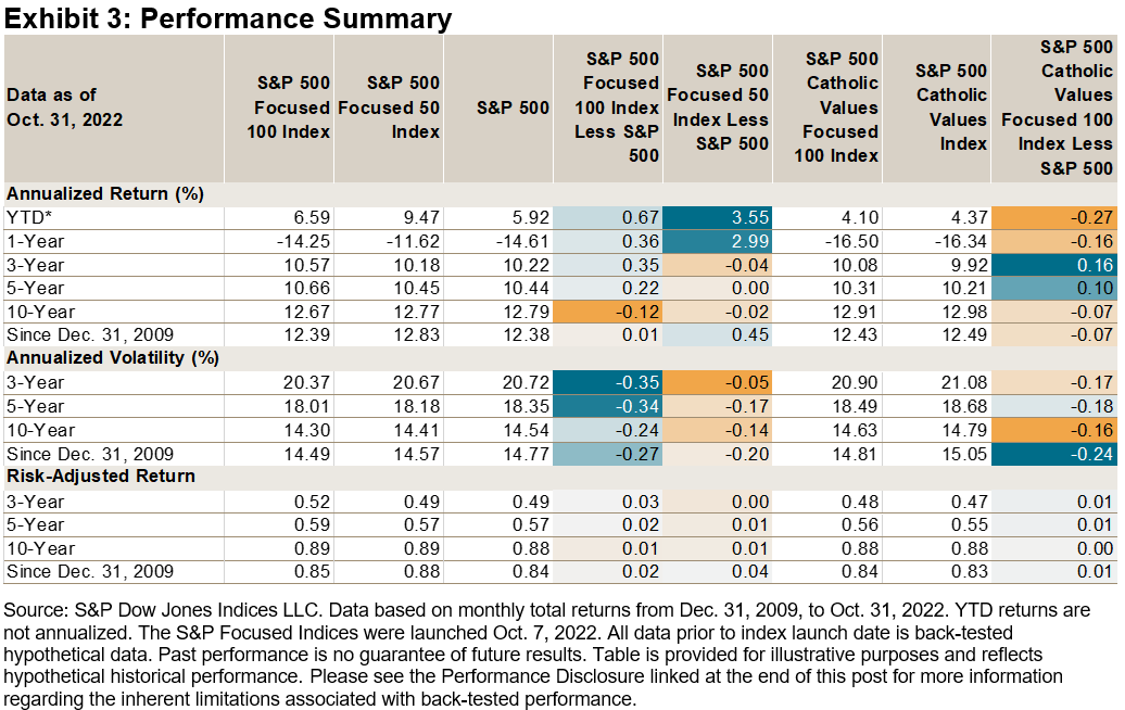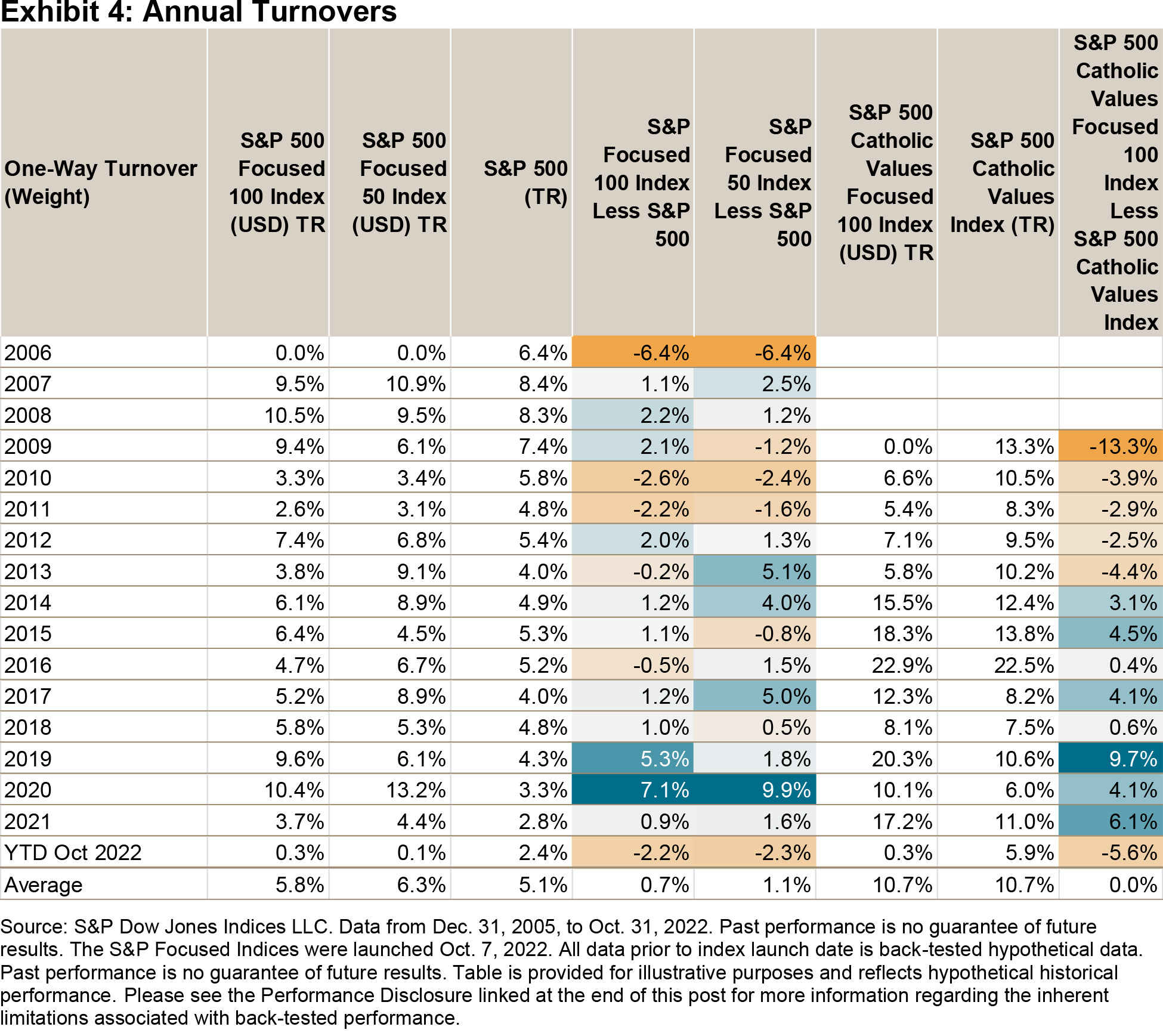 Exhibit 4 shows that the S&P Focused Indices’ construction provided similar turnover figures as their benchmarks, historically.