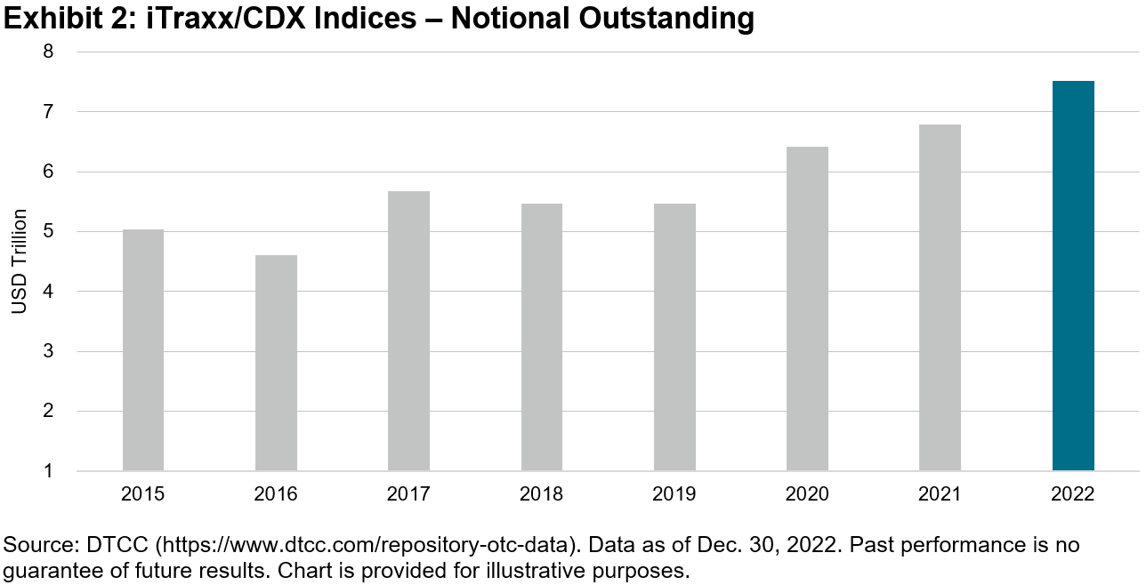Over the past five years, individual investors have shown an increasing preference for accessing the bond market through index-tracking ETFs. When comparing fund flows of mutual funds and ETFs, a stark contrast emerged in 2022. Fixed income mutual funds had USD 546 billion in outflows in 2022 due to rising rates and price underperformance. Despite that market backdrop, fixed income ETFs saw USD 199 billion in inflows. This trend also played out in the municipal market. While taxable bond ETF asset flows kept AUM levels relatively flat, municipal bond flows grew by USD 29 billion, pushing municipal bond ETFs assets to over USD 100 billion, a 26% increase