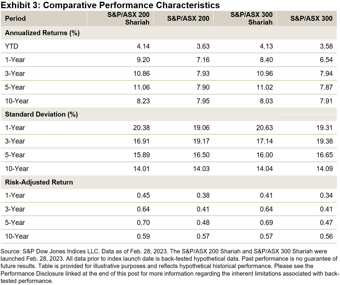 3   For more information on the performance of the full suite of S&P DJI’s Islamic indices, please refer to the quarterly S&P Shariah Index Scorecard. S&P/ASX Shariah Indices can be found in the Q1 2023 update.