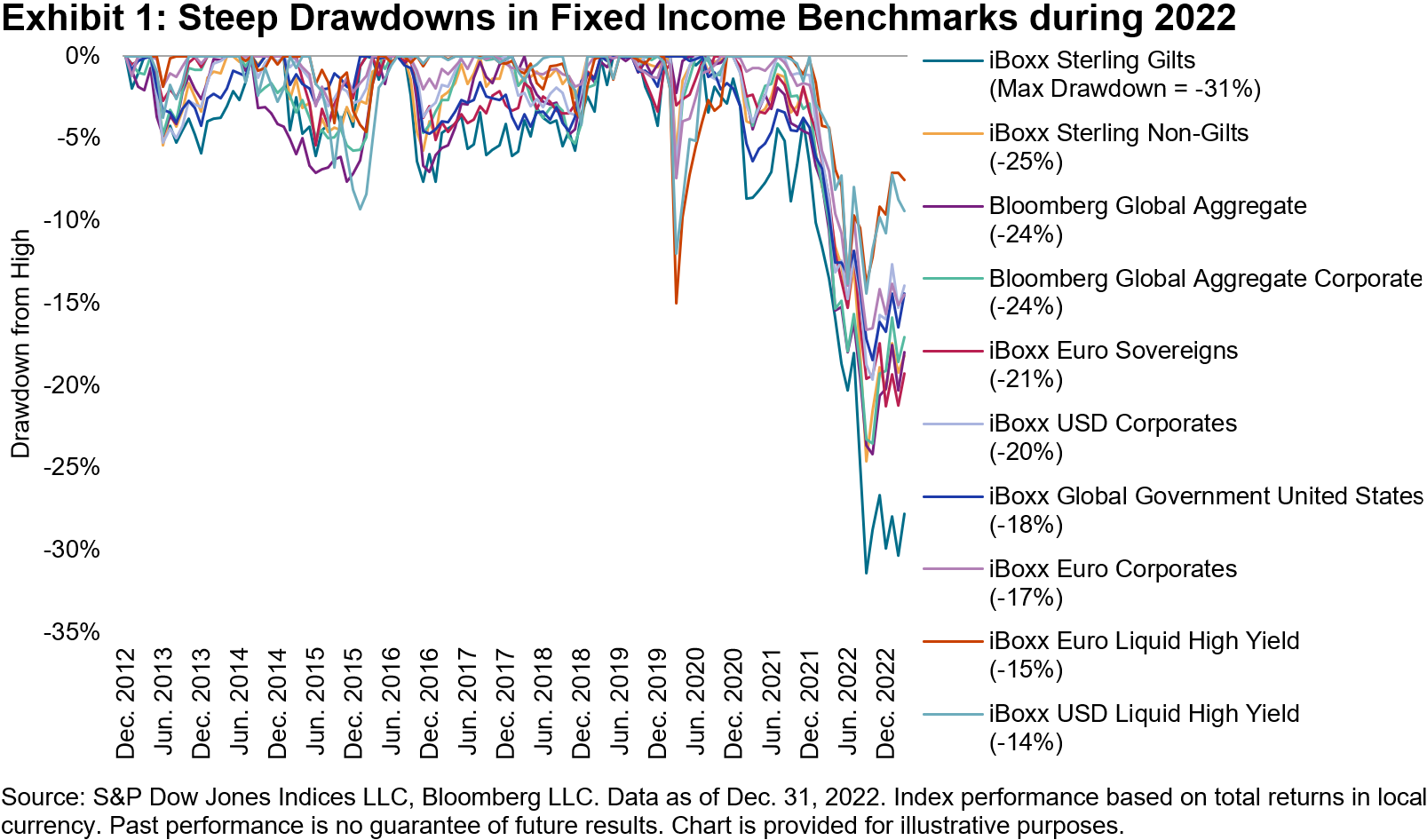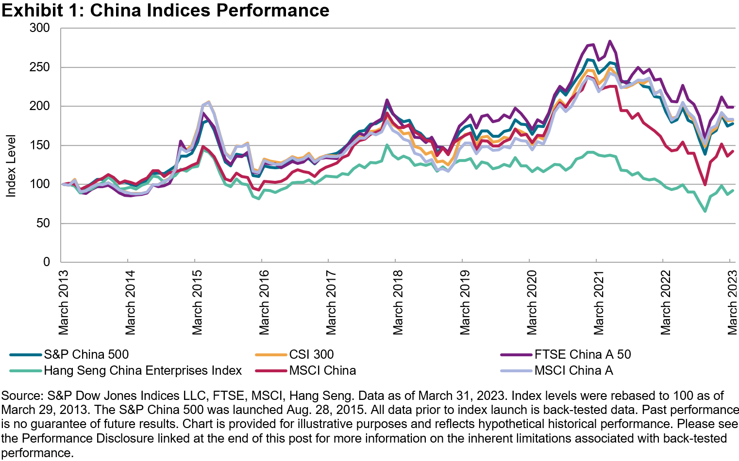 In part, this stems from a subtlety in the construction of the two indices. High Beta seeks to measure the S&P 500’s highest-beta stocks. If the market has gone up, presumably the highest-beta stocks will be among the market’s best performers, and therefore might also be expected to turn up in Momentum. If the market has gone down, however, presumably the highest-beta stocks will be among the market’s worst performers, leading Momentum to tilt toward lower-beta constituents. This helps explain the specific differences observed during the first quarter of 2023, following the S&P 500’s 18% decline in 2022.