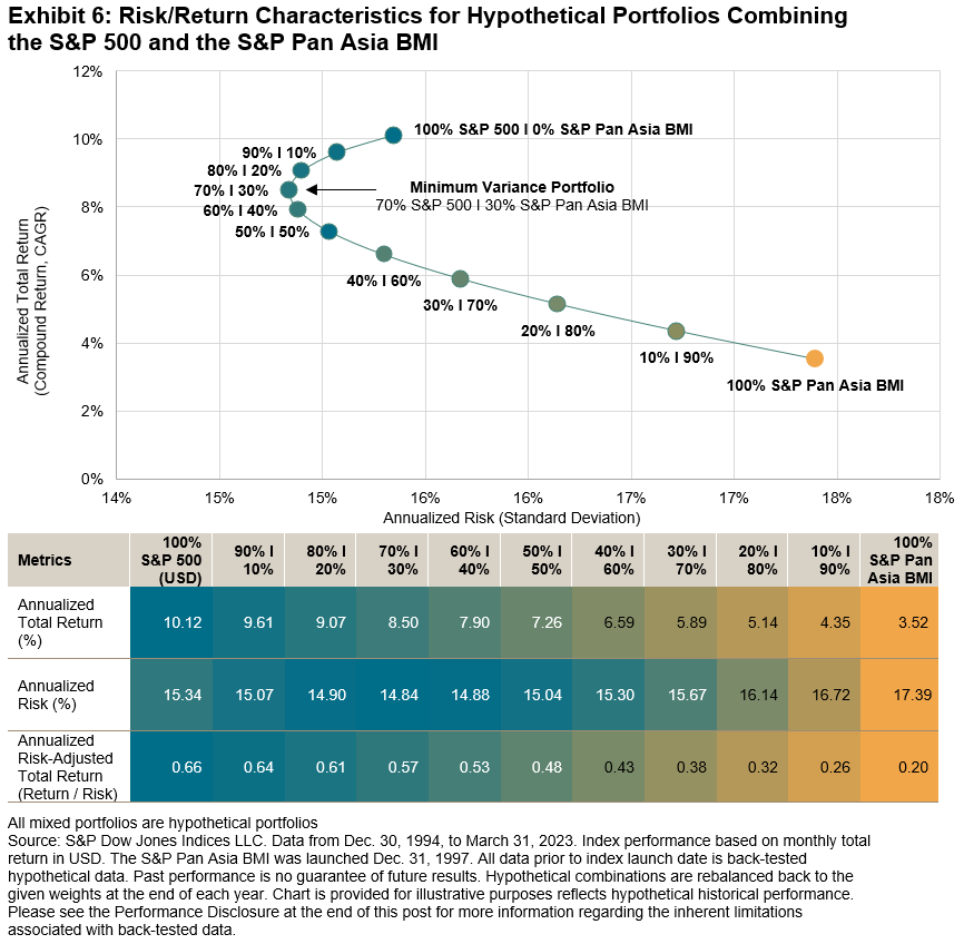 At the same time, it’s important not to overlook the impact of equal weighting within each sector. To see why, we construct hypothetical “intermediate” portfolios that represent steps along distinct paths between the S&P 500 and the S&P 500 Equal Weight Index. Exhibit 1 summarizes these two hypothetical paths.