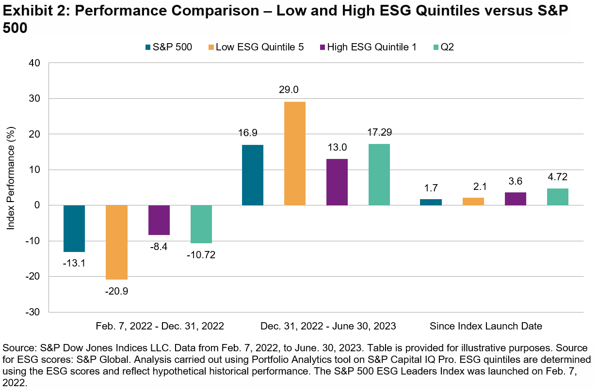 Over the 18-month period from June 30, 2021, to Dec. 31, 2022, the defensive nature of the two indices held up relatively well versus the S&P 500. Both generated superior relative returns over the measurement period, but only the S&P 500 Low Volatility Index experienced lower volatility versus the S&P 500, while the S&P 500 Quality Index was generally in line with the S&P 500.