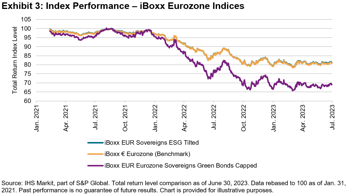 We need not look so far back in time to find examples of market rotation between Equal Weight and cap weight. In calendar 2022, Equal Weight outperformed the S&P 500 by 6.7%; in the first six months of 2023, Equal Weight lagged by 9.9%. Exhibit 2 shows the difference between Equal Weight and cap weight over a trailing six-month horizon.