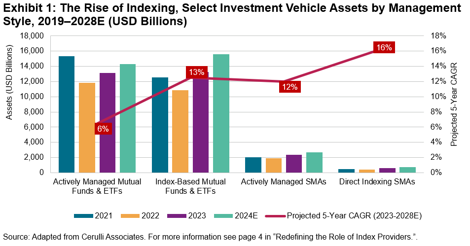 As the landscape of index-based products becomes increasingly crowded, the recent findings from Cerulli Associates highlight that asset and wealth managers should thoughtfully consider how to leverage index providers’ solutions to stand out from the crowd.5 Strategies include going beyond traditional index data to drive product development and leveraging brand and content for product marketing and distribution. Embracing these strategies can not only differentiate firms but may also position them for success in the evolving retail wealth management market.