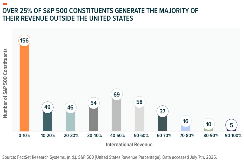 With global fragmentation accelerating and geopolitical risks rising, the traditional assumptions underpinning U.S. equity investing may be due for a fresh look. While the S&P 500® has long served as the cornerstone for broad-based U.S. market exposure, globalization has reshaped the revenue profile of many constituents. Today, more than a quarter of the companies in the index generate the majority of their revenue outside the U.S.1