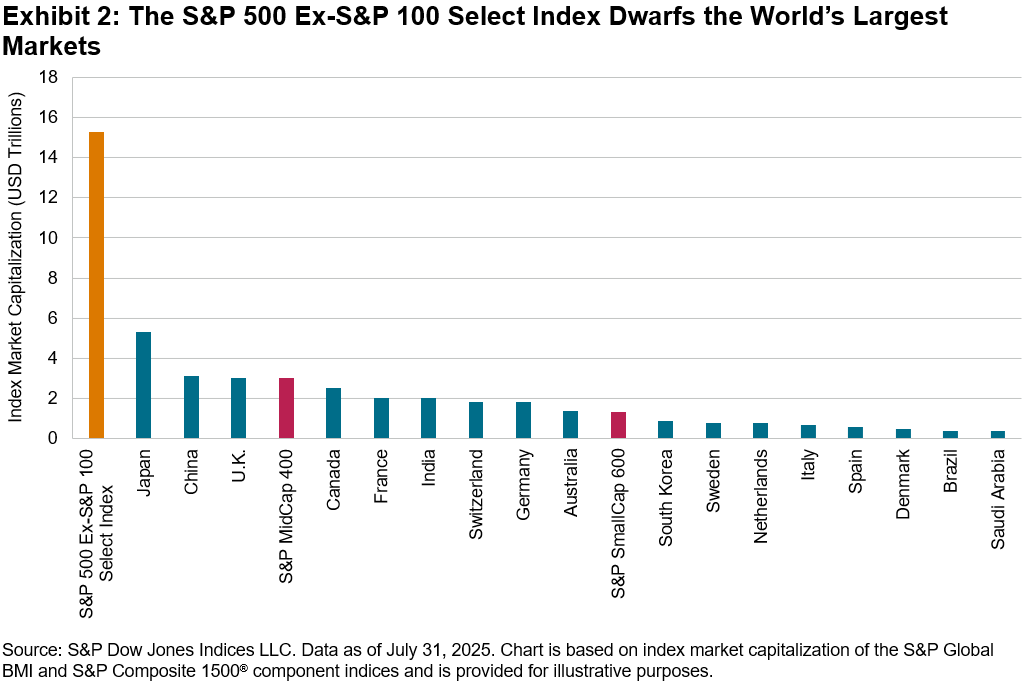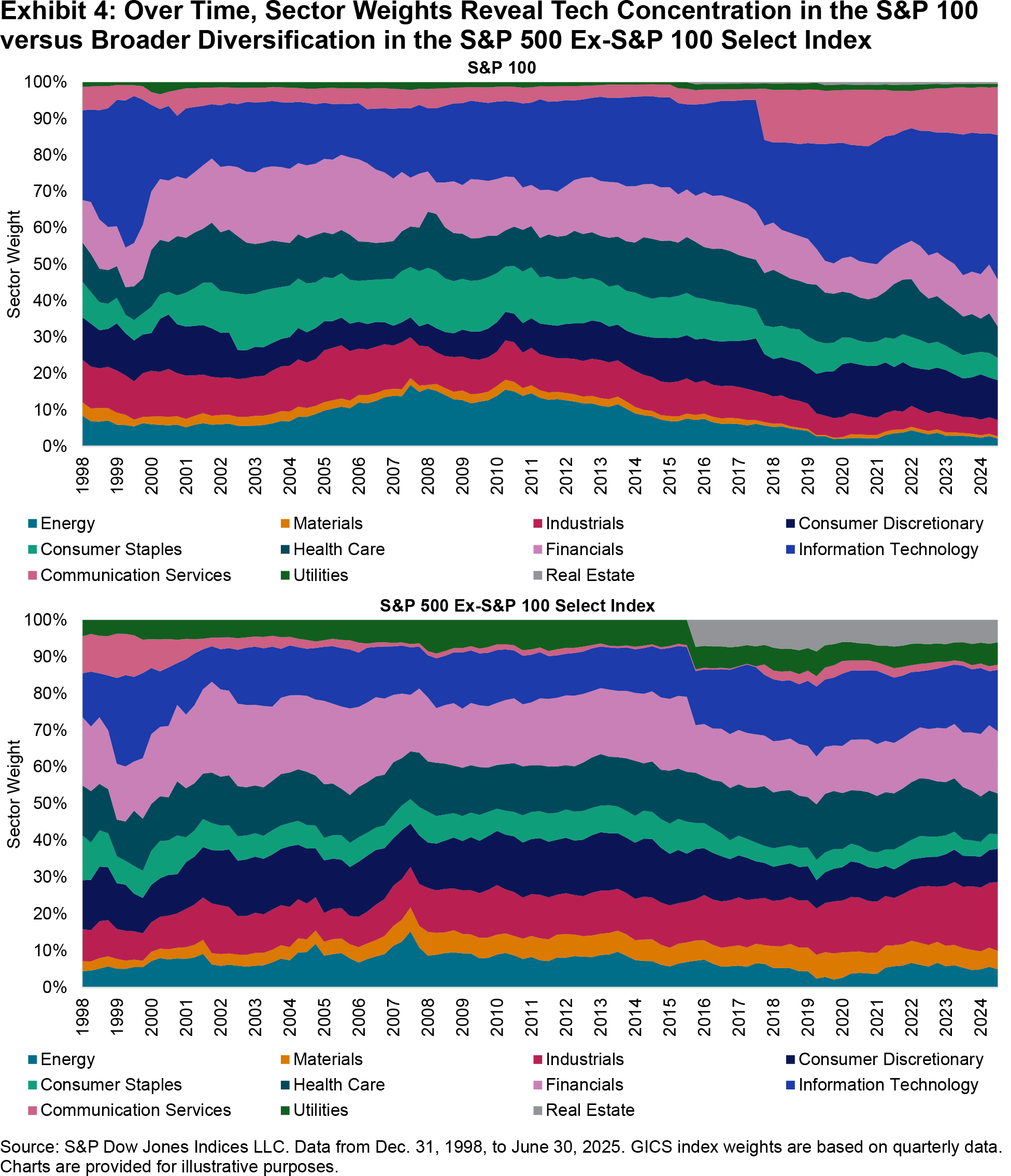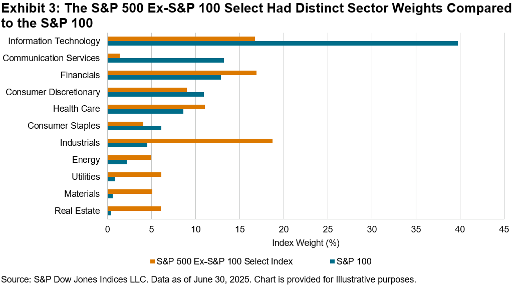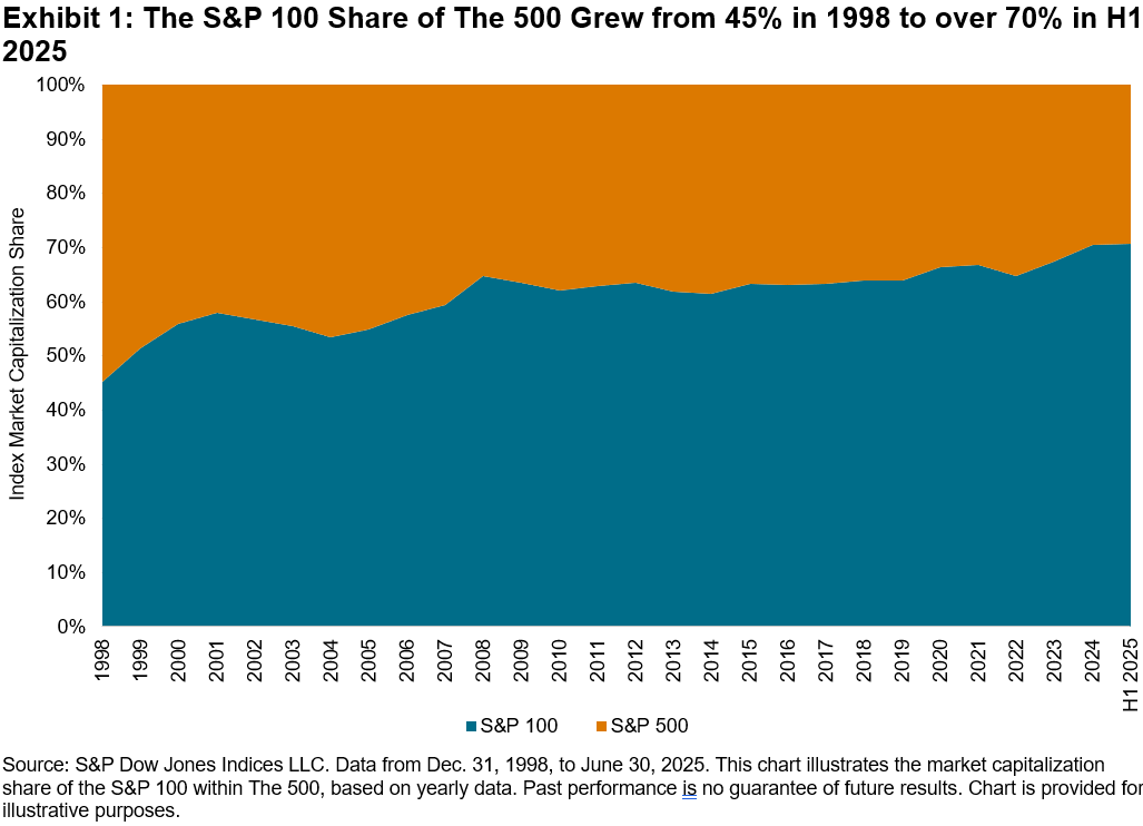 When the handful of stocks that outperform are also skewed toward larger capitalization companies, that can be an additional headwind for managers who are underweight the largest stocks. Offering an additional perspective on the prospects for stock pickers, Exhibit 3 shows the percentage of constituents that beat the benchmark by year. 44% of member stocks beat the S&P 500 in H1 2025, an improvement from the 28% witnessed in 2024 and the 26% in 2023, both challenging years driven by mega-cap dominance.